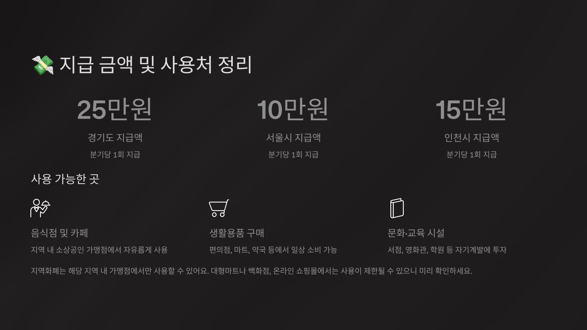 이 금액은 식비, 교통비, 교육비 등 다양한 분야에 활용 가능하며, 일부 지역에서는 QR 결제나 지역카드 형태로도 받을 수 있어요.